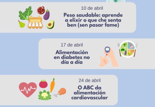 O Centro de Saúde de Carballo, a través do seu servizo de dietista-nutricionista, pon en marcha o programa formativo “Coida da túa saúde”, unha iniciativa dirixida á veciñanza co obxectivo de promover hábitos de vida saudables a través da alimentación. O ciclo desenvolverase ao longo do mes de abril con tres sesións temáticas nas que …