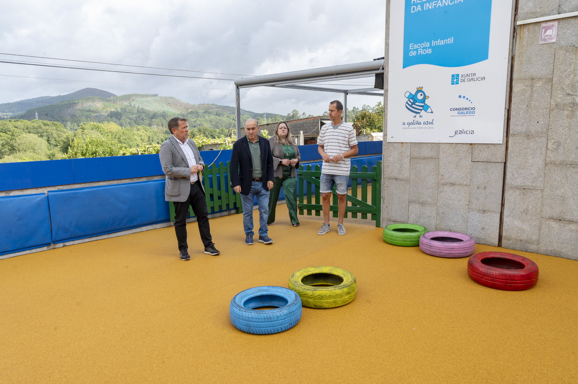 O xerente do Consorcio Galego de Servizo de Igualdade e Benestar, Perfecto Rodríguez, comprobou hoxe o resultado das obras de mellora realizadas na zona exterior da escola infantil de Rois, pertencente á rede pública autonómica. Na visita tamén participou o alcalde do concello, Ramón Tojo.