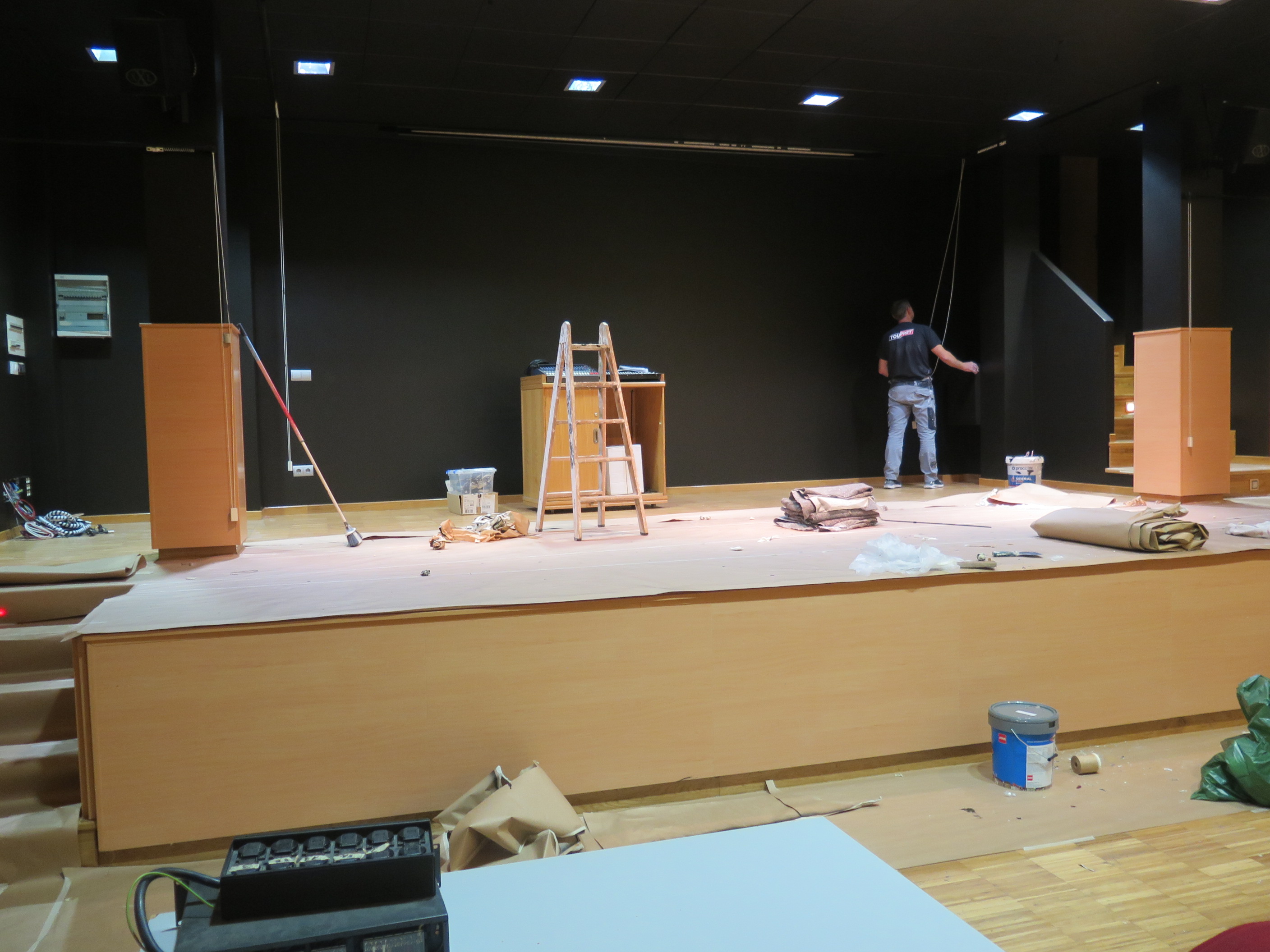Entre as intervencións máis destacadas atópase o pintado en ton negro dos paramentos, teitos, barras e estrutura da pantalla do escenario.