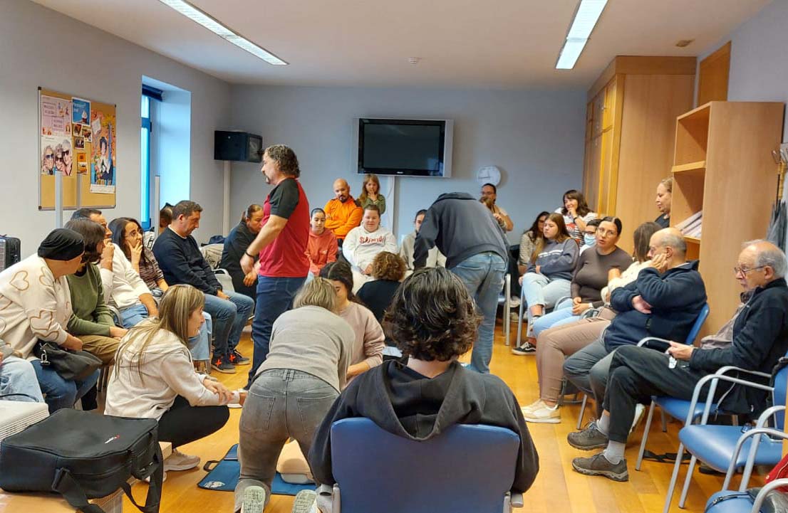 O centro social polivalente de Brión quedou pequeno para acoller o curso gratuíto de reanimación cardiopulmonar organizado polo Concello de Brión e impartido por monitores da rede de voluntariado Cardioangel. Un curso de dúas horas de duración no que as persoas asistentes recibiron unha formación inicial en RCP e despois puxeron en práctica os coñecementos adquiridos.