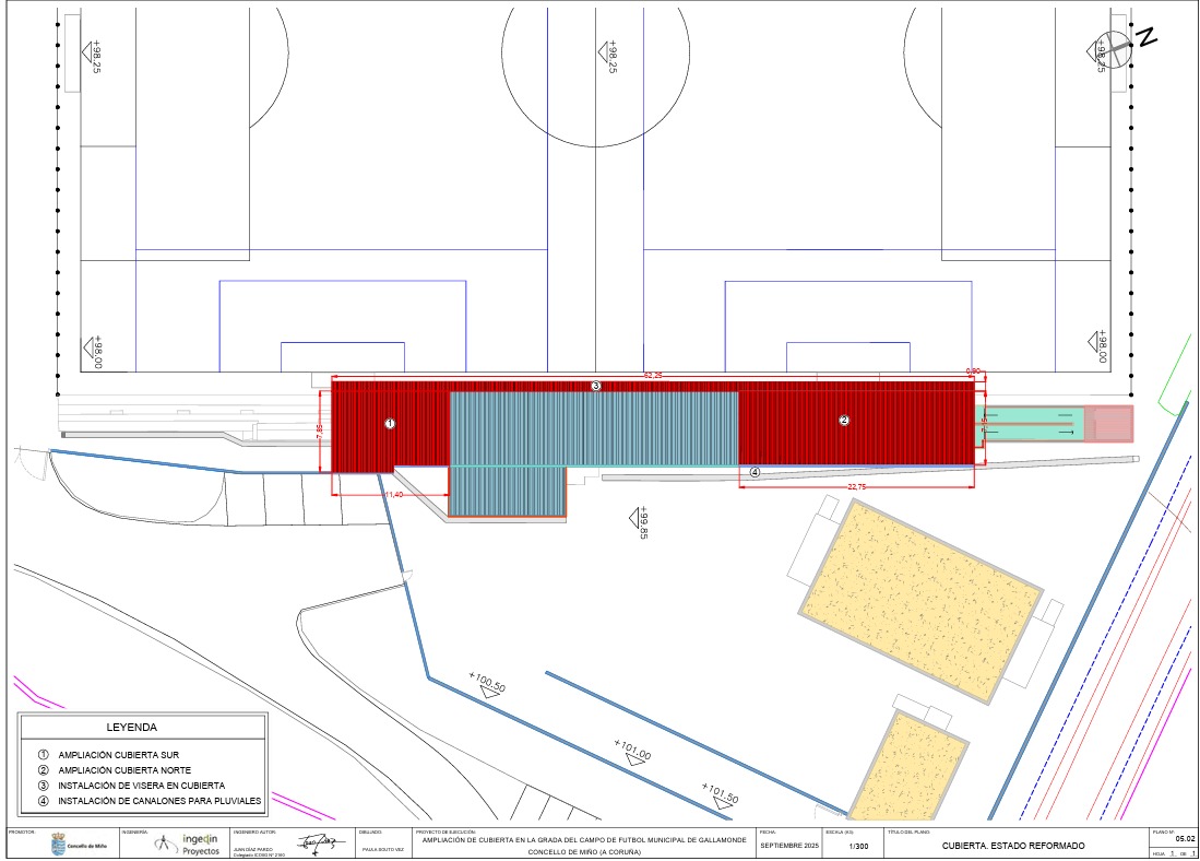 O Concello de Miño sacou a contratación o proxecto para ampliar a cuberta da bancada do campo municipal de Gallamonde, dando resposta a unha demanda da AD Miño e do público que acode a este recinto deportivo.