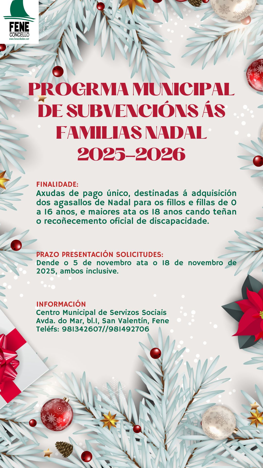 PROGRAMA DE SUBVENCIÓNS ÁS FAMILIAS PARA A FESTIVIDADE DE NADAL 2025-2026