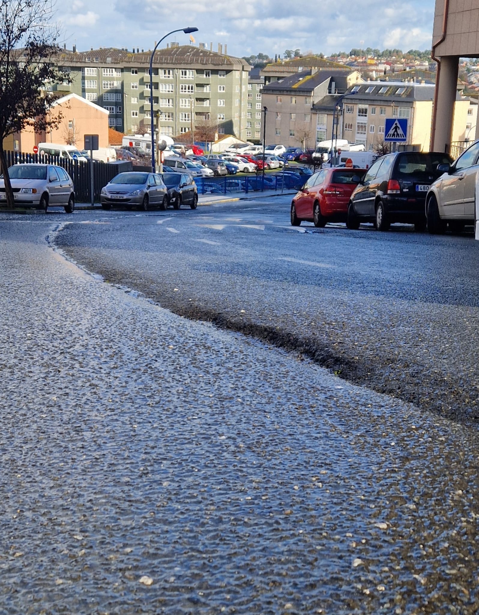 • Os veciños volven queixarse polo mal estado de beirarrúas e calzada, filtracións de auga en garaxes, farois avariados, maleza sen rozar e un paso de peóns seguro xunto ao centro de saúde