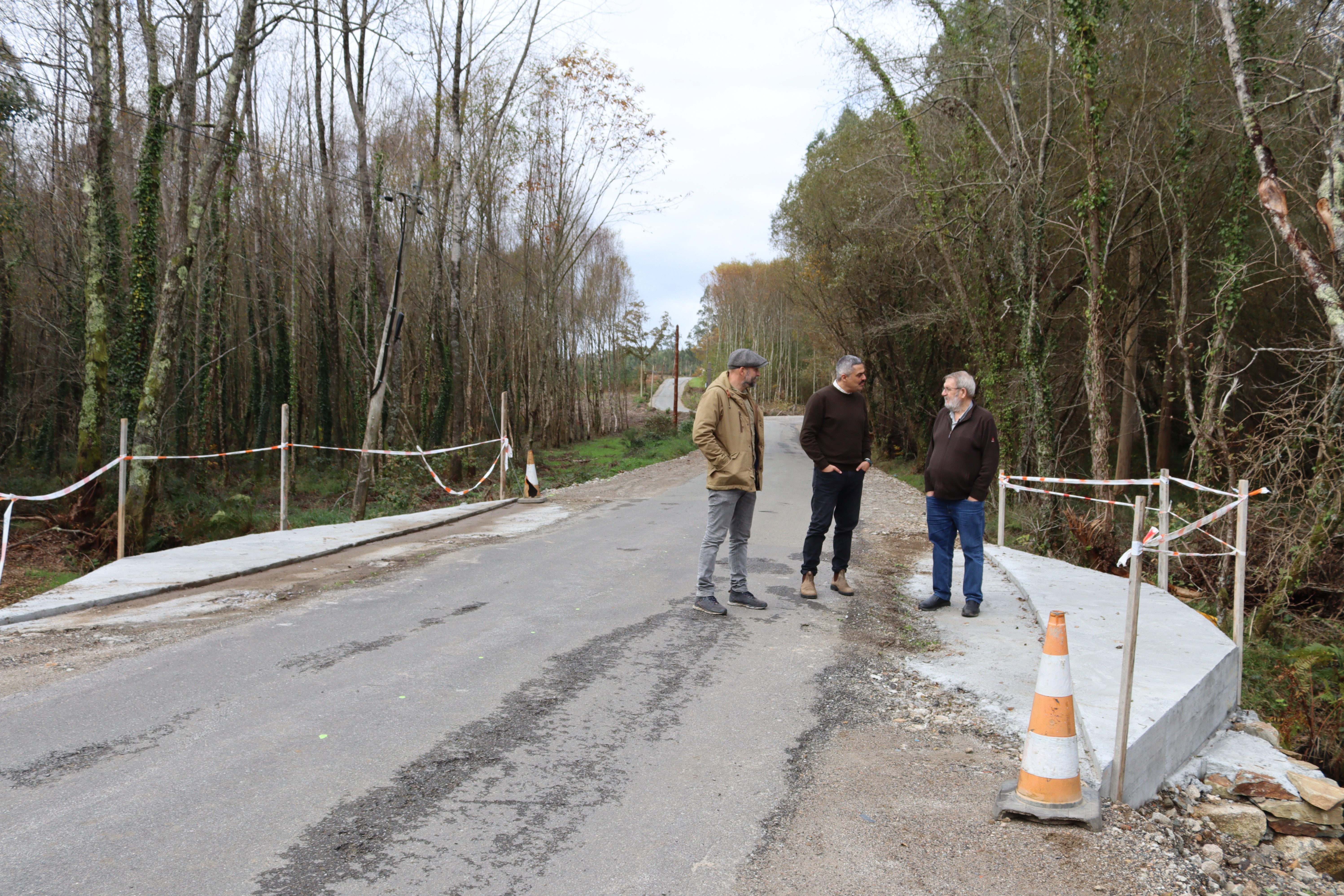 O alcalde, Daniel Pérez, e os concelleiros de Obras e Servizos, Luis Lamas e Miguel Vales, realizaron un percorrido pola estrada. As obras desenvólvense ao longo de 3.330 metros e inclúen limpeza de gabias, drenaxe e estendido de aglomerado nunha superficie de 22.725 metros cadrados. Na zona de cruce da vía cos ríos Calvos e Vilar de Cima realizouse un sobreancho de un metro por cada marxe. No lugar do Outón tamén foi preciso construír un muro de coieira de 35 metros de lonxitude e algo menos de 3 de alto.