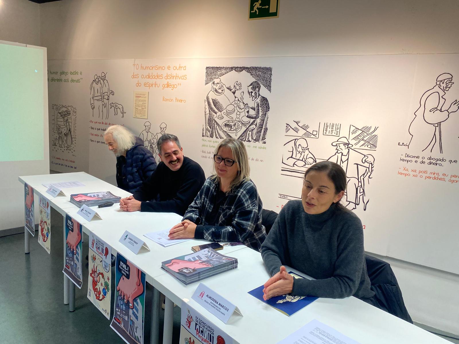 Coincidindo coa conmemoración do seu aniversario, o Museo do Humor Xaquín Marín presentou este luns a unidade didáctica Mal! pero de humor ben, impulsada pola Concellería de Cultura de Fene coa colaboración da Xunta de Galicia, a través do programa de axudas destinadas a centros museísticos da comunidade autónoma 2025. A responsable do Museo do Humor, Almudena Marcos, e o debuxante de bd e director de Demo Editorial, Manel Cráneo, foron os encargados de presentar a publicación nun acto no que tamén participaron a alcaldesa de Fene, Sandra Permuy e o fundador do Museo do Humor, Xaquín Marín (ao que se sorprendeu desvelándoselle no acto que o protagonista da obra era él mesmo, transformado en personaxe de cómic).