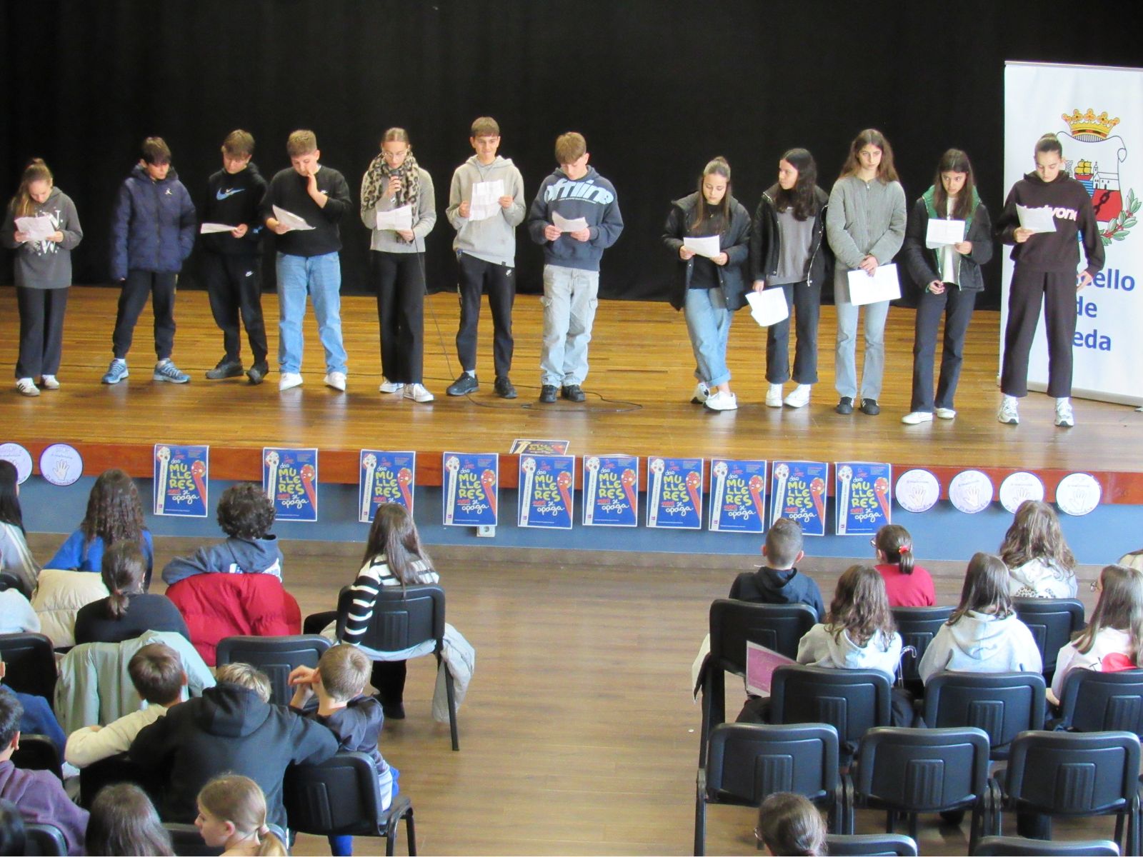 Neda conmemorou o 25N co “Encontro escolar polo bo trato”, protagonizado, desta volta, por alumnado de últimos cursos de primaria do CEIP San Isidro e os primeiros curso da ESO do IES Fernando Esquío. Tras gardar un minuto de silencio polas mulleres vítimas de violencia de xénero, os estudantes compartiron o traballado realizado nas aulas sobre a temática.