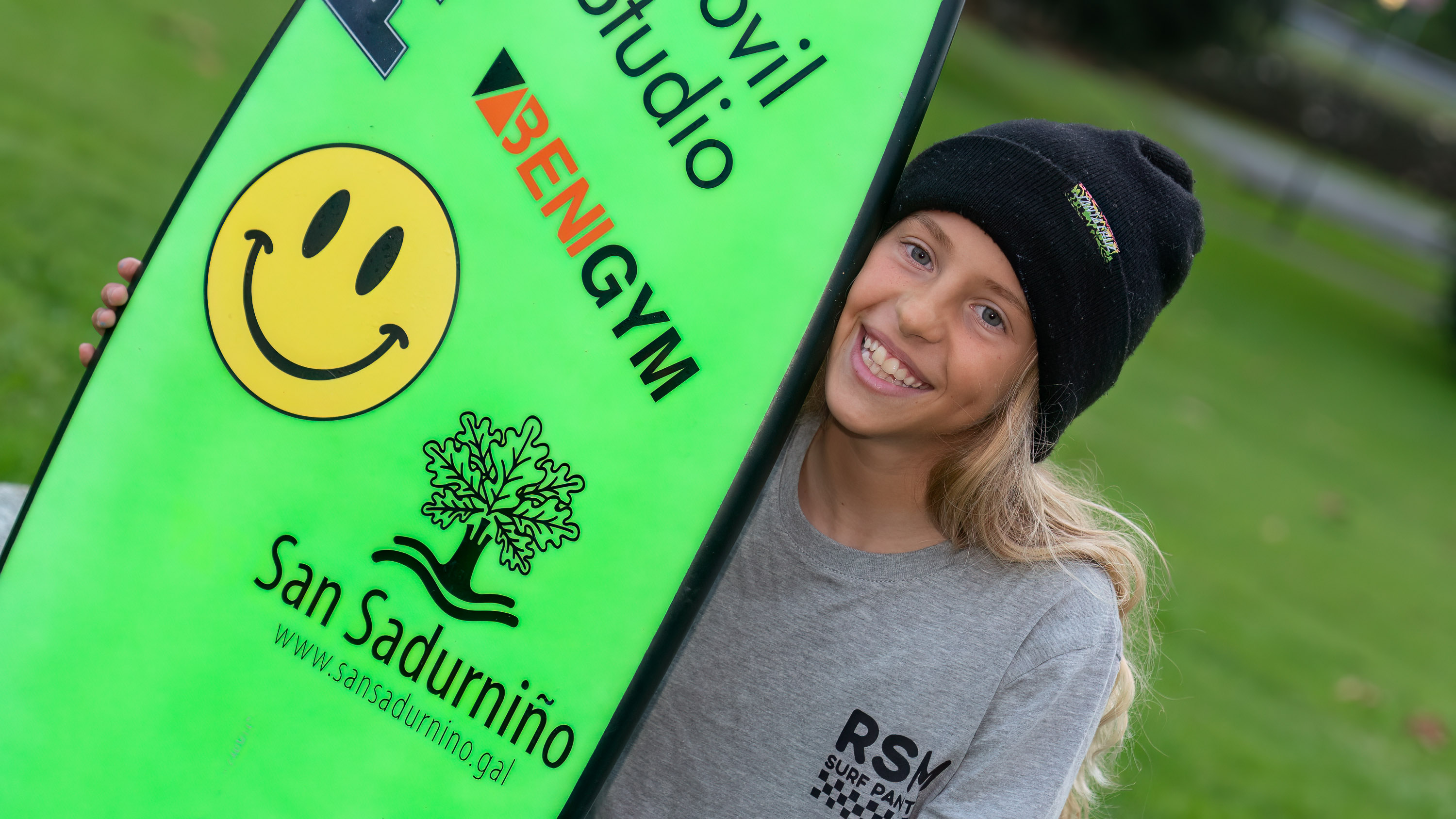 Malia a súa idade, fala da competición cunha madurez que sorprende. E tamén coa paixón de quen descubriu este deporte por pura curiosidade: “Un verán vía a xente surfear en Valdoviño e Pantín. Eu non sabía o que era, pero quería aprender”.