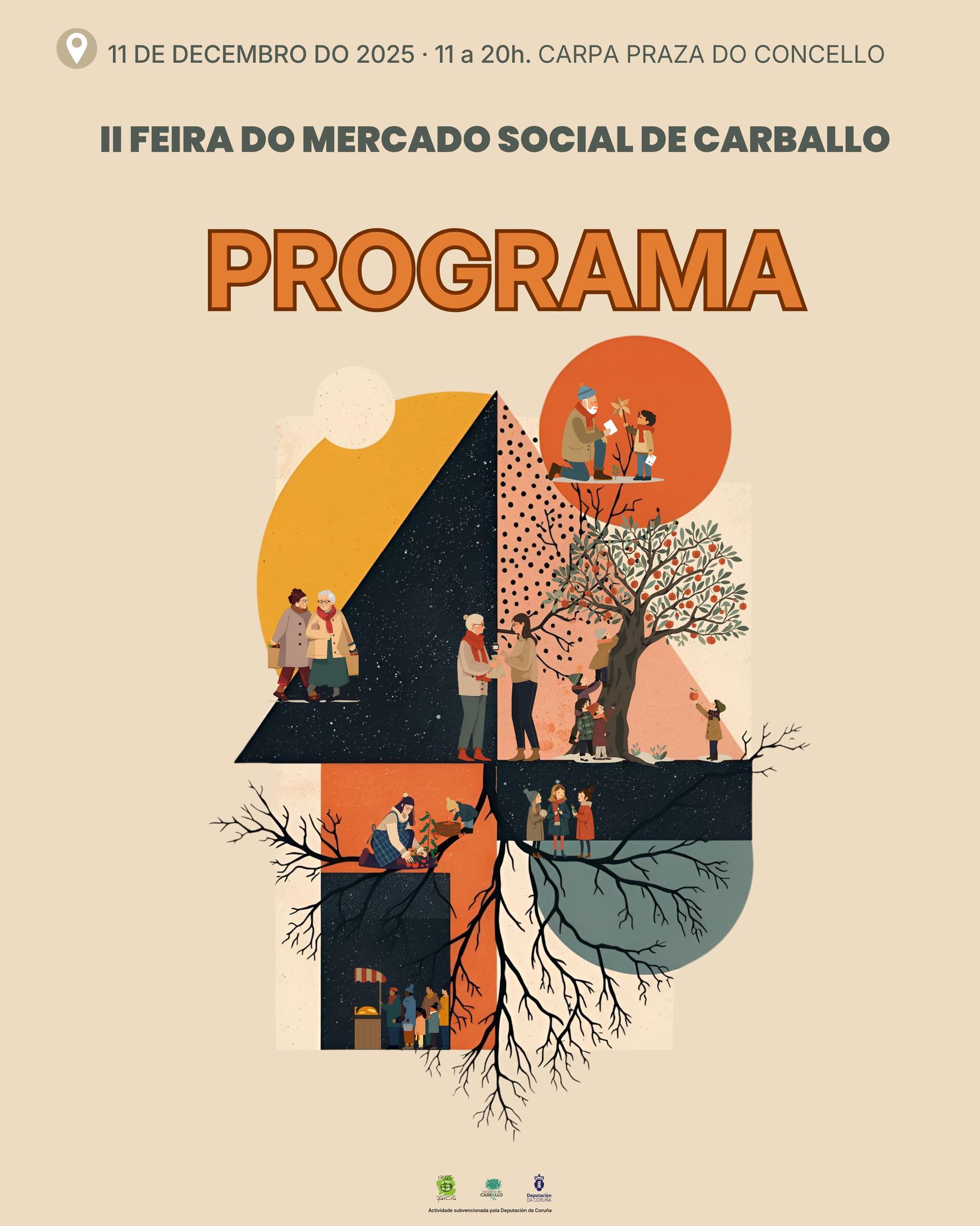 Despois da edición celebrada no ano 2021, Carballo acolle a II Feira do Mercado Social, que se celebrará na carpa da Praza do Concello e na que participarán Coop57 Galicia, Anxóuxeres, Cooperativa Nosa Enerxía, O espírito da colmea, ONG Por que no?, Íntegro, Comercio Xusto de Solidariedade Internacional de Galicia, Fíos de Cores, Asociación Otras Narrativas, UPA Espazo Barefoot, Reas Galicia, Livegens, Vallelongo e Toxalriba, con postos de exposición e venda. E ademais desenvolverase este completo programa de actividades: