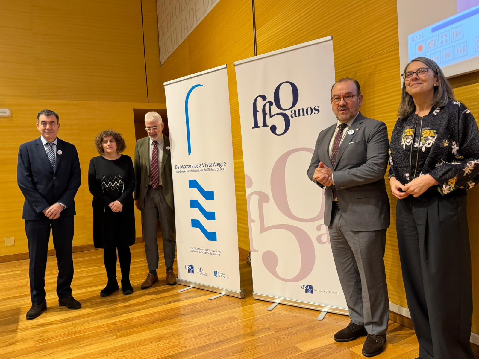 No acto de presentación deste exemplar, publicado por Edicións USC, tamén participaron o reitor da Universidade de Santiago, Antonio López, o conselleiro de Educación, Román Rodríguez, e o decano da facultade, Elías Feijóo, e a vicedecana de Cultura, Elsa González.