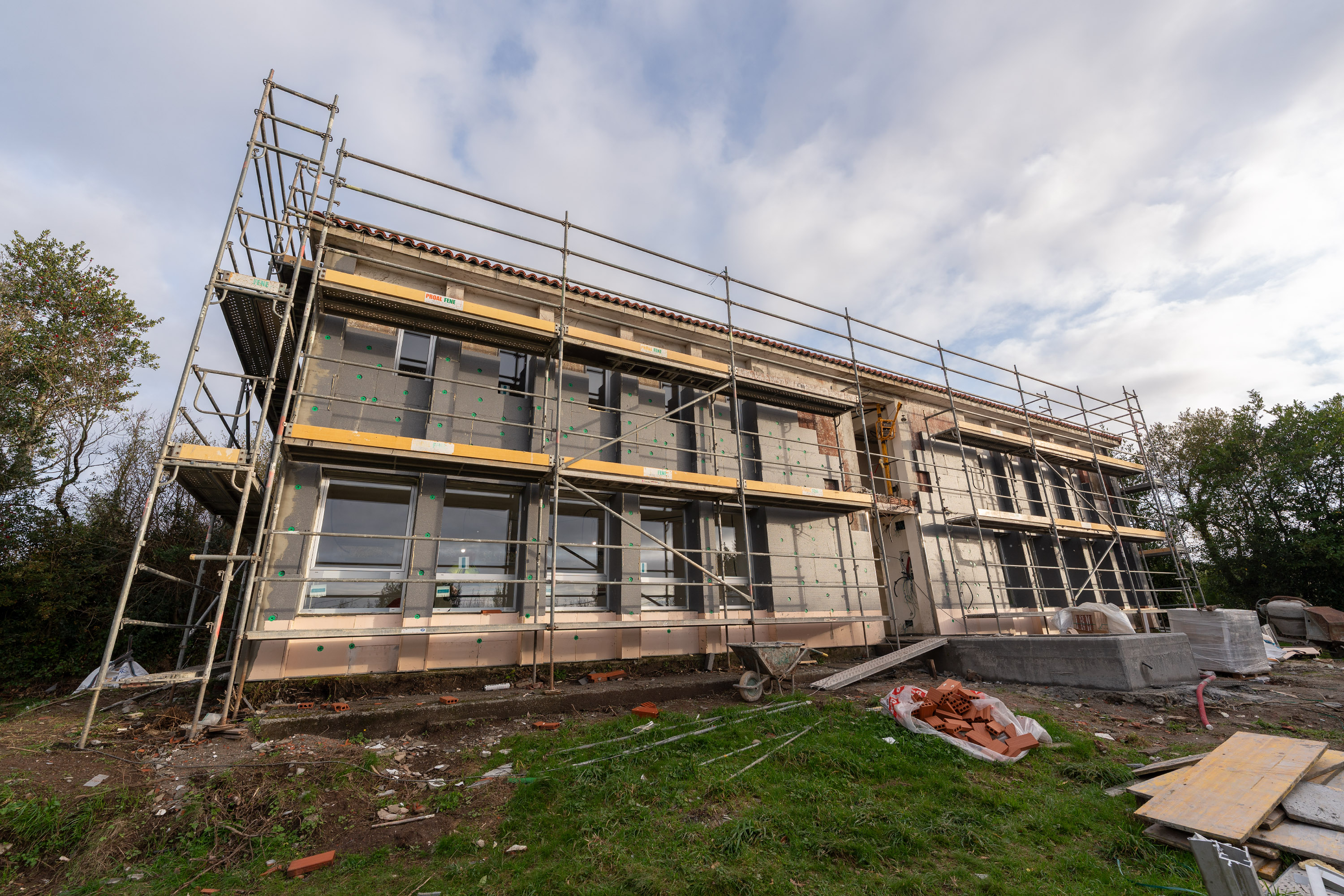 O antigo grupo escolar de Igrexafeita xa parece outro. O que antes eran uralitas furadas, paredes con fendas e vidros rotos, hoxe amósanos unha imaxe ben distinta e renovada malia ter que ollala entre andamios e sinais evidentes dun traballo en marcha que aínda tardará unhas semanas en completarse. Desde que se retomaran as obras aló a empezos de setembro, o edificio recubriuse cun moderno illamento térmico e acústico, botóuselle un novo tellado, instaláronselle as fiestras e recubríuselle o chan, ademais de contar xa con falsos teitos e con boa parte do cableado interior. Mesmo se montou a estrutura do elevador exterior que, con total seguridade, será o elemento máis característico dunha rehabilitación deseñada co obxectivo de converter a vella escola nun centro de abordaxe terapéutica do alzhéimer e outras demencias. O investimento na obra está cuantificado en 300.000 euros, financiados na súa maioría pola Deputación da Coruña grazas a un acordo asinado en agosto de 2022 entre Secundino García Casal e o vicepresidente provincial, Xosé Regueira.