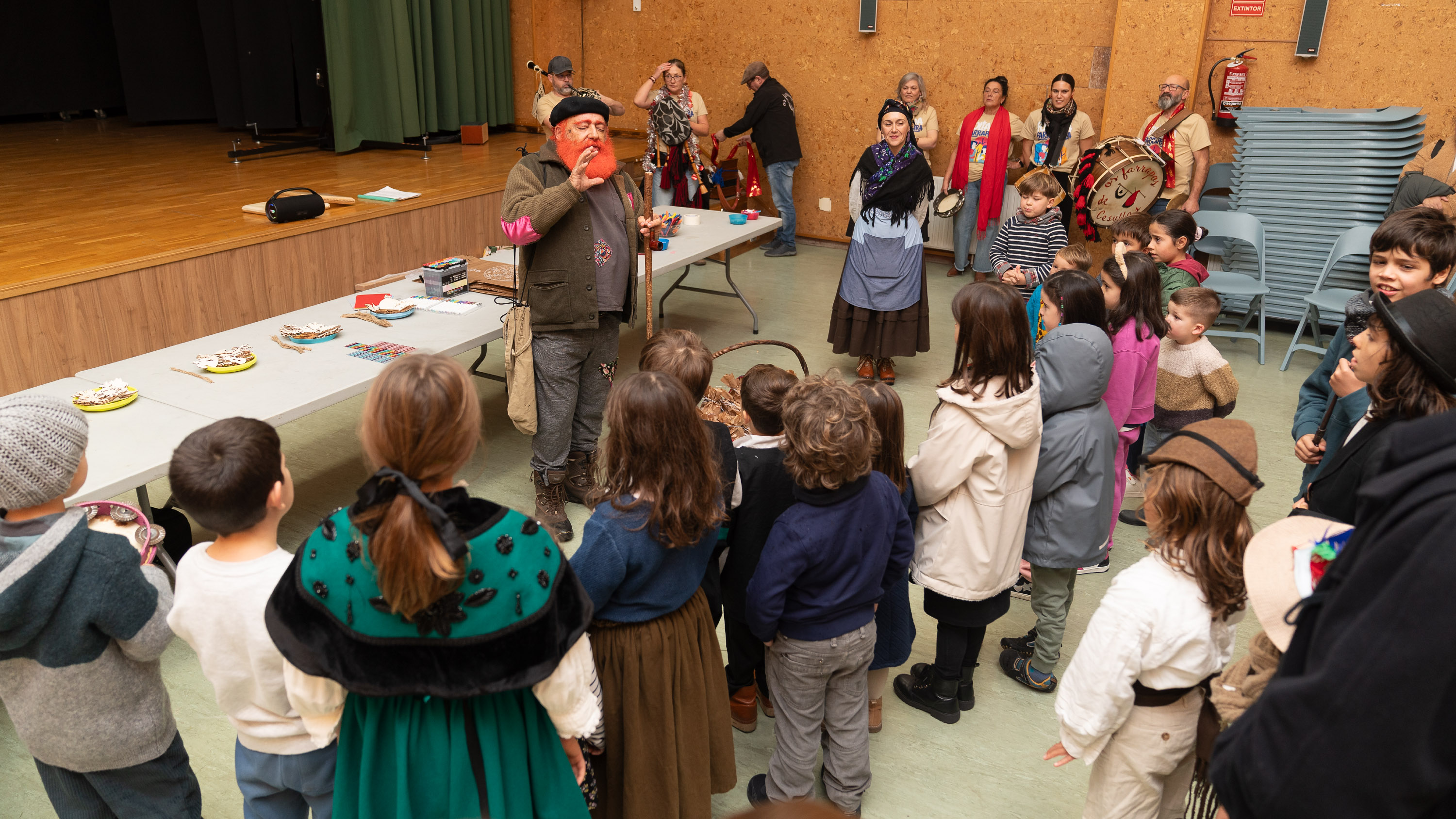 O carboeiro do Courel chegou, coma o grande persoeiro que é, anunciado polas gaitas, a percusión e o acordeón do grupo Os Farrapos, incluído na Rede Cultural da Cultura da Deputación da Coruña. O Apalpador mesmo se atreveu a bailar uns agarrados mentres empezaba a servirse un rico chocolate con biscoito e mentres a cativería participaba no obradoiro de decoración de Nadal organizado en colaboración coa Asociación Semente de Trasancos..