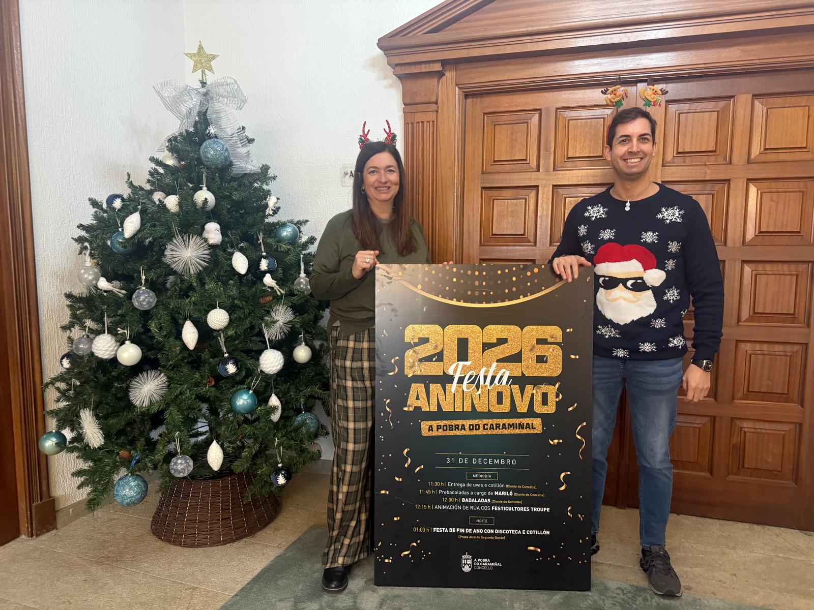 A Pobra despedirá o ano e daralle a benvida ao 2026 por todo o alto. As Concellerías de Cultura e Mocidade volverán sumar esforzos para ofrecer un programa completo de actividades no que haberá badaladas, animación, discoteca móbil e cotillón. Os edís das áreas, Patricia Lojo e Eloy Sobrido, presentaron esta mañá a programación coa que se busca “que os veciños e veciñas conten cunha oferta de lecer para despedir o ano na Pobra, sen necesidade de ter que desprazarse”.