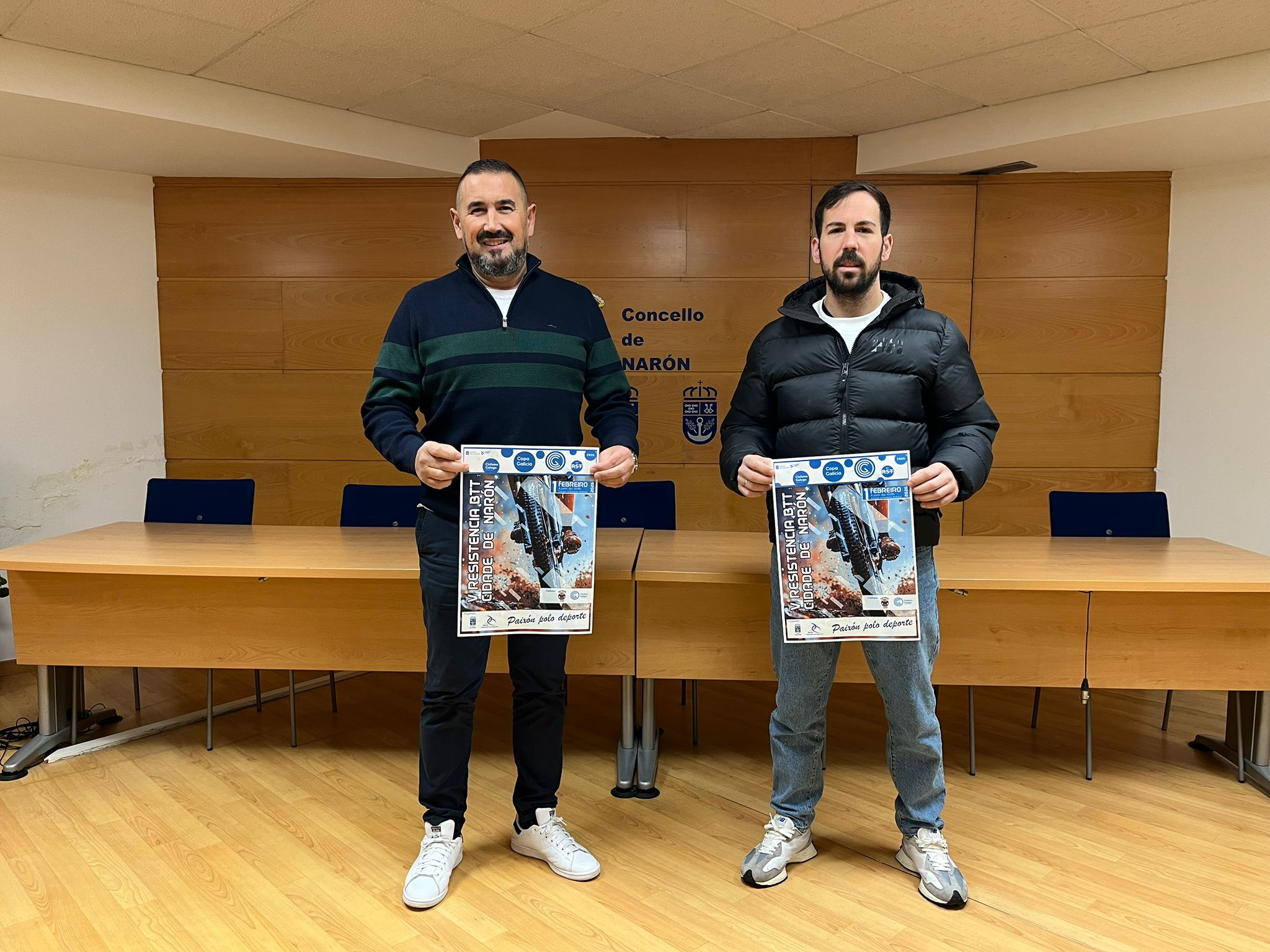 O concelleiro de Deportes, Ibán Santalla, e o presidente do Club Ciclista Narón, Samuel Bustabad, presentaron esta mañá a nova edición da proba, puntuable para a Copa Galicia de Resistencia BTT 3 horas. Santalla avanzou que o evento contará cun máximo de 300 participantes, que competirán nun percorrido deseñado integramente por Pedroso.