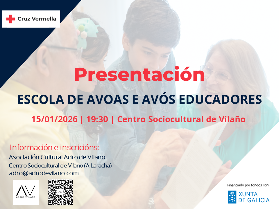 A Asociación Cultural Adro de Vilaño e a Cruz Vermella anuncian unha nova colaboración que permitirá desenvolver por primeira vez no concello da Laracha o programa Avós e Avoas Educadores, unha iniciativa dirixida a persoas que teñen netos e netas con idades entre 0 e 18 anos.