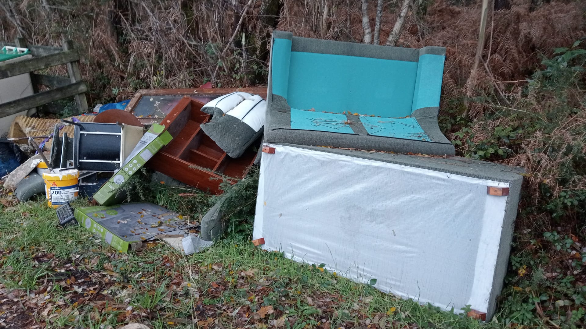 Unha porta vella, un bote de pintura baleiro, tres sofás, un moble de madeira, caixas de cartón, unha cadeira, coxíns, o recheo dun colchón e algúns obxectos máis apareceron ciscados esta mañá ao pé dos colectores da capela da Portela, en San Sadurniño. Un punto de paso moi frecuentado -e relativamente resgardado- preto do límite con Narón que cada certo tempo é motivo de publicacións e avisos a través das redes sociais municipais, precisamente, por ser foco das verteduras ilegais de voluminosos. E dicirmos “verteduras ilegais” posto que non hai outra maneira de denominalas, xa que son resultado de actos sancionables con multas cuantiosas e os seus efectos repercuten negativamente no ambiente e na paisaxe, ademais de supoñer un gasto importante para o Concello ao ter que dedicar medios para a retirada e tratamento axeitado destes refugallos. Por esta razón, desde o Goberno local faise unha chamada á concienciación veciñal para que se utilice o servizo gratuíto de recollida de voluminosos -só hai que chamar ao 981 490 027-, pero tamén para que denunciemos estes casos na Garda Civil.