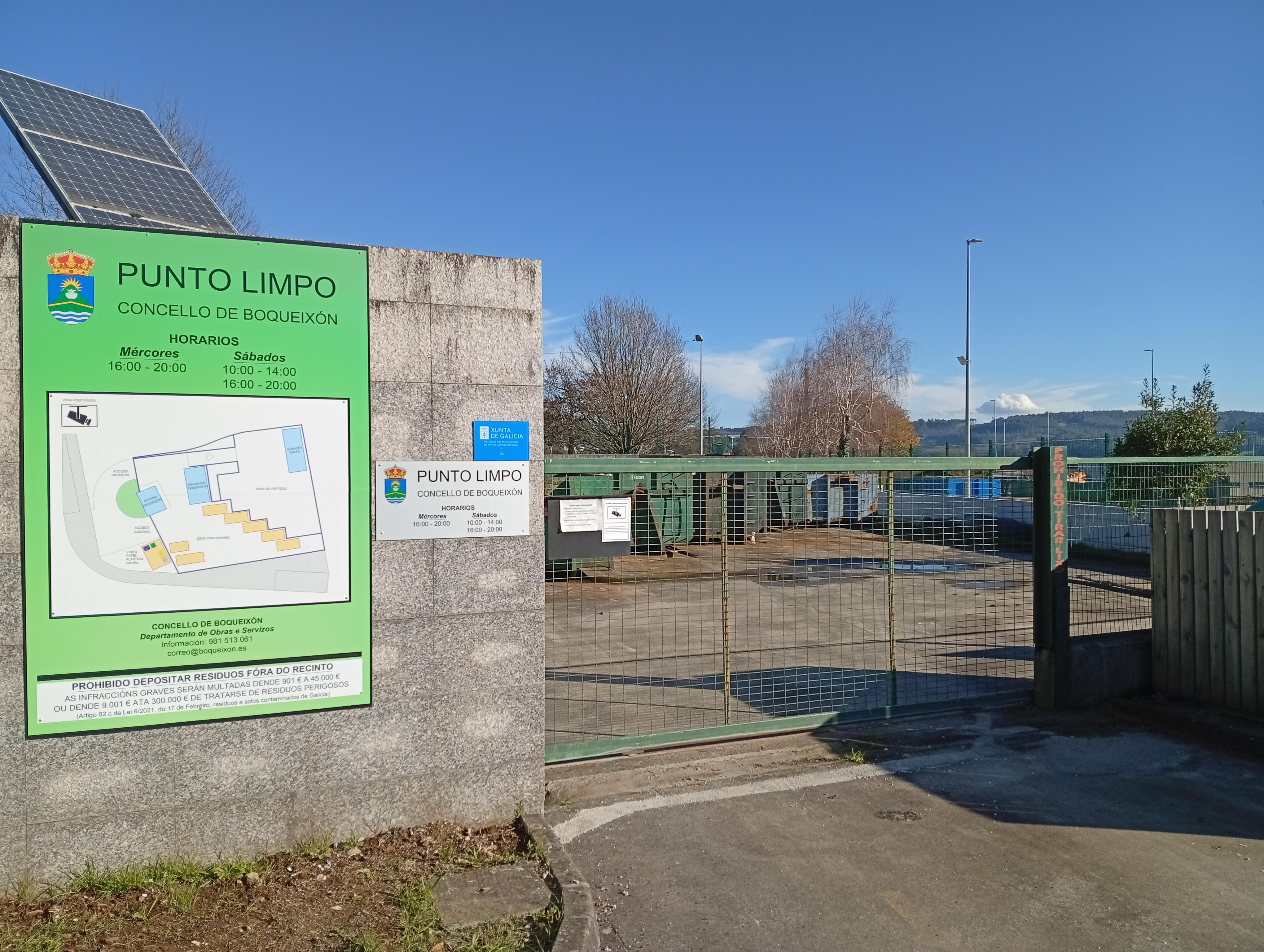 O punto limpo de Boqueixón está emprazado na entrada do polígono empresarial de Sergude. O seu horario de apertura é: mércores (de 16:00 a 20:00 horas) e sábados (de 10:00 a 14:00 horas e de 16:00 a 20:00 horas).