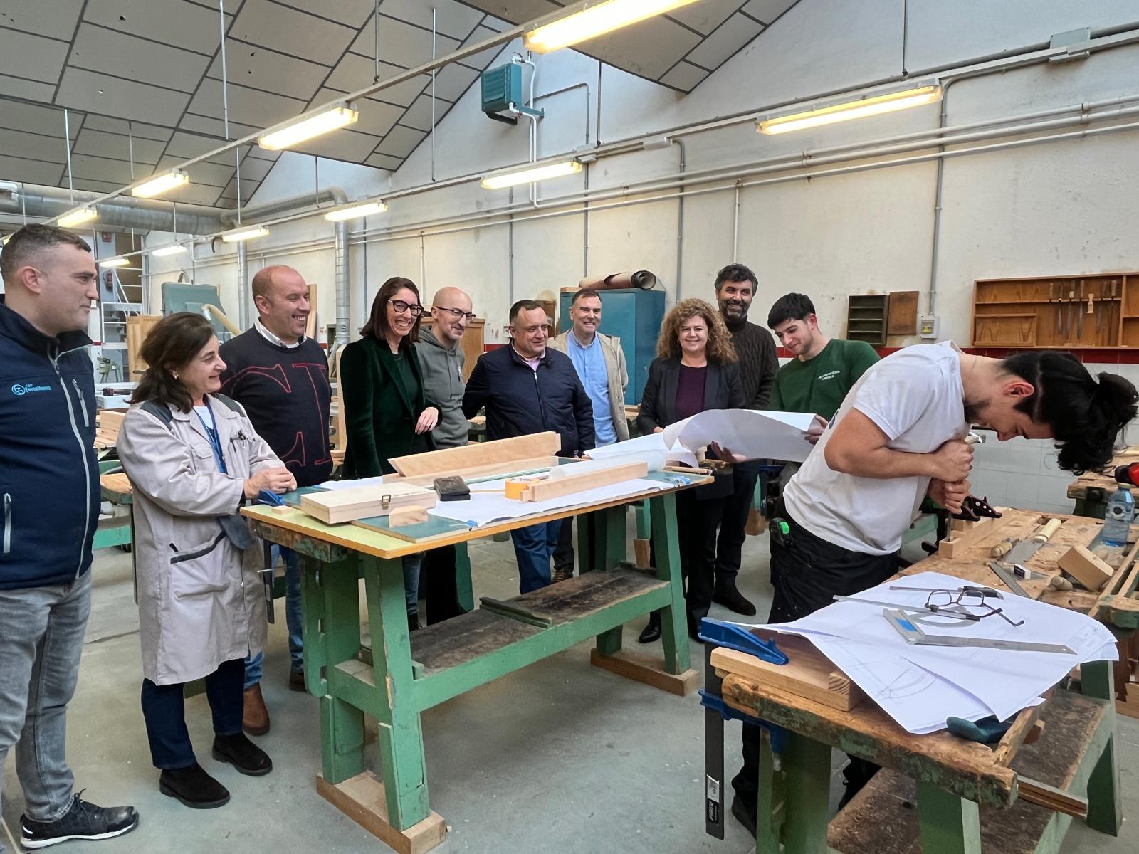 A directora xeral de Formación Profesional, Eugenia Pérez, asistiu hoxe, no Centro Integrado de FP Someso na Coruña, a unha sesión preparatoria do alumnado que participará no campionato estatal SpainSkills 2026, nas modalidades de Ebanistería e Carpintería, en representación de Galicia. Trátase de Pablo Álvarez, do propio CIFP Someso, na especialidade de Carpintería, e de Anxo Silva, do Instituto Plurilingüe Antón Losada Diéguez da Estrada, no apartado de Ebanistería.
