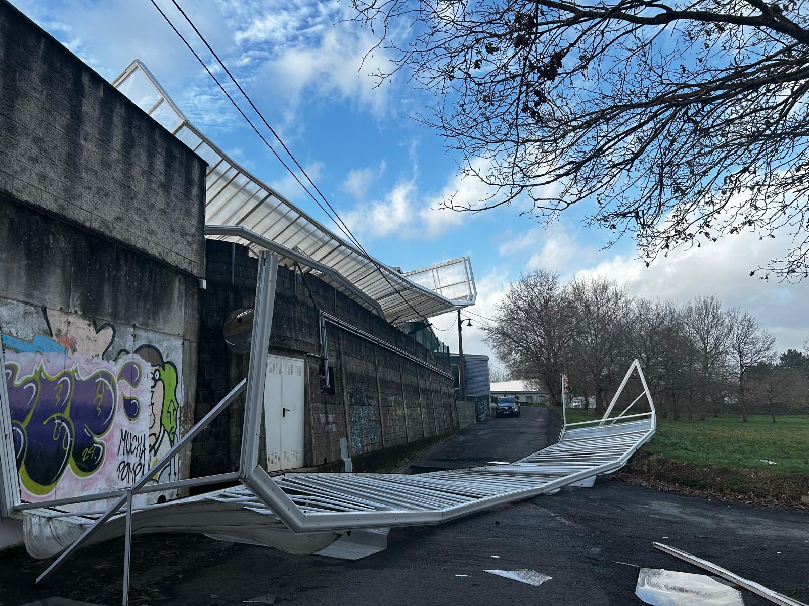 A estrutura quedou totalmente estragada, caendo en parte no camino da parte de atrás, sen causar danos persoais