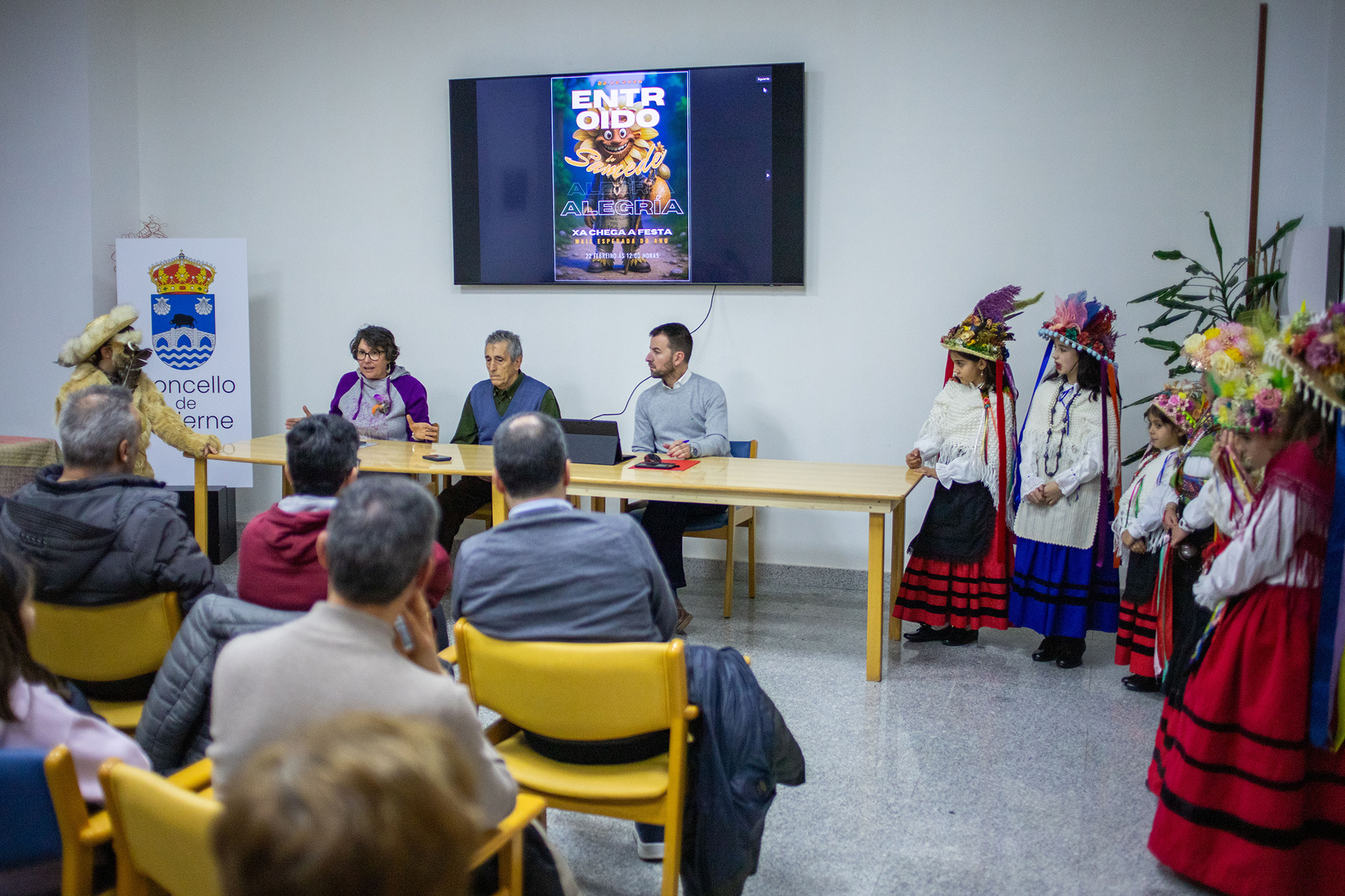 O baixo da Casa do Concello acolleu esta tarde a presentación do Entroido de Samede, que se festexará este domingo, 22 de febreiro, co tradicional desfile pola aldea que lle dá nome e con saída, como de costume, na igrexa.