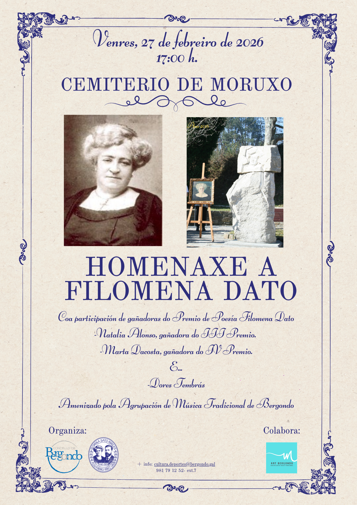 O Concello de Bergondo reafirma con esta homenaxe o seu compromiso por manter en vigor a figura histórica e literaria de Filomena Dato, impulsando a creación poética en galego a través do premio que leva o seu nome e que neste 2026 alcanza a súa sexta edición.