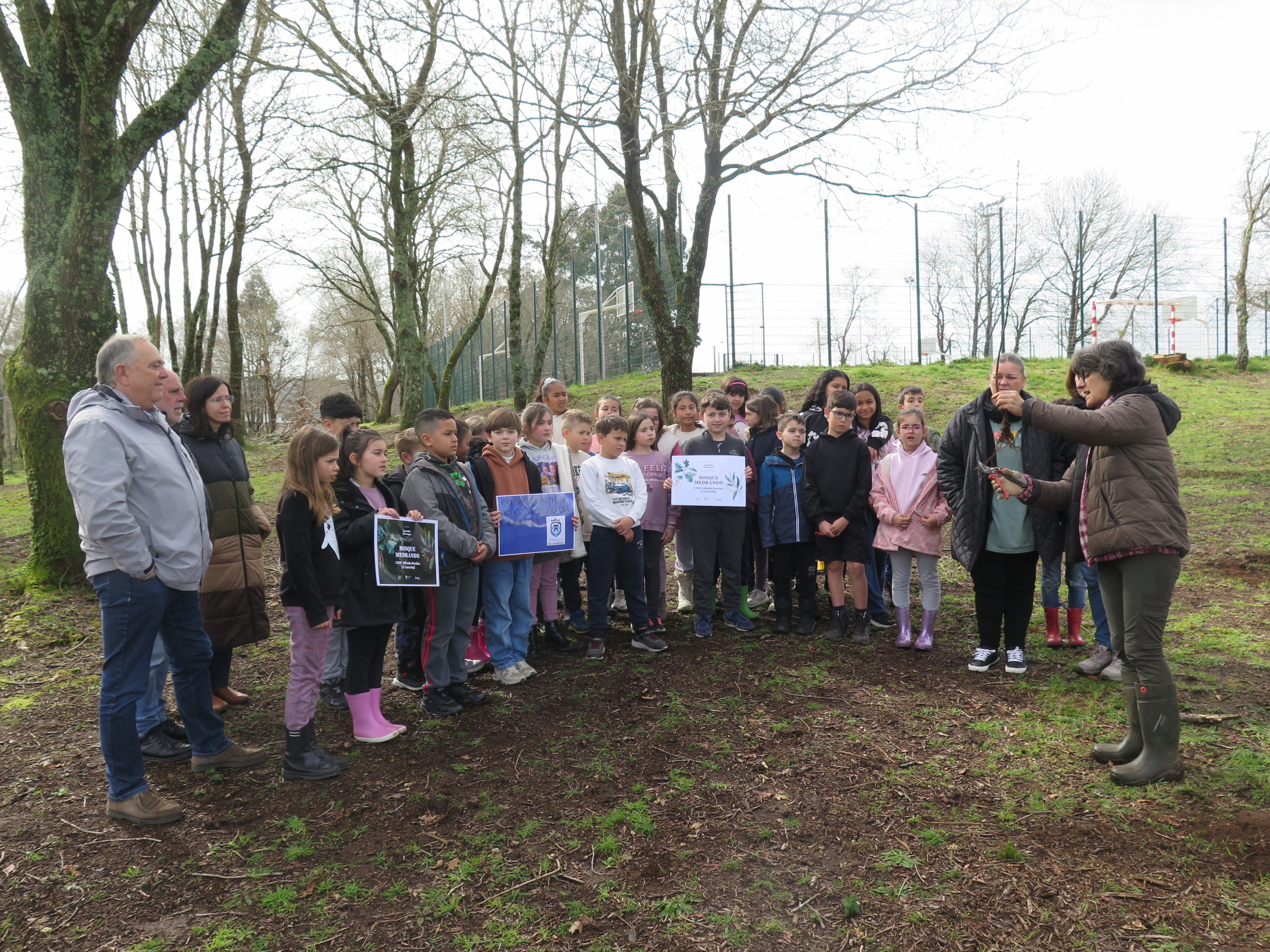 O alcalde da Laracha, José Manuel López Varela, o concelleiro de Medio Ambiente, José Ramón Martínez Barbeito, e a concelleira de Educación, Patricia Bello, acudiron hoxe ao CEIP Alfredo Brañas de Paiosaco para presenciar a xornada de plantación de árbores por parte do alumnado do centro, que deron os primeiros pasos para enriquecer o bosque autóctono existente xunto ao colexio no marco do programa Aprender do bosque, impulsado pola Fundación María José Jove.
