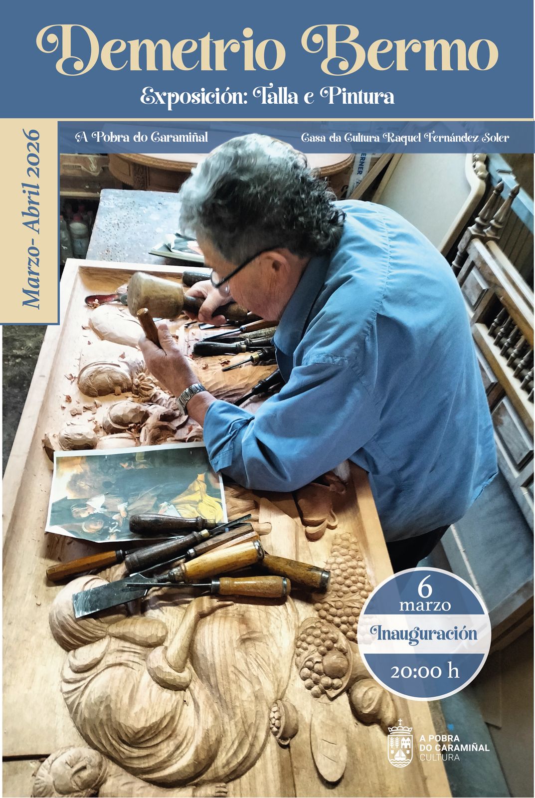 A Casa da Cultura Raquel Fernández Soler acollerá mañá, venres 6 de marzo, ás 20.00 horas, a inauguración da exposición de tallas e pinturas do veciño da Pobra do Caramiñal Demetrio Bermo, un dos referentes da artesanía galega contemporánea.