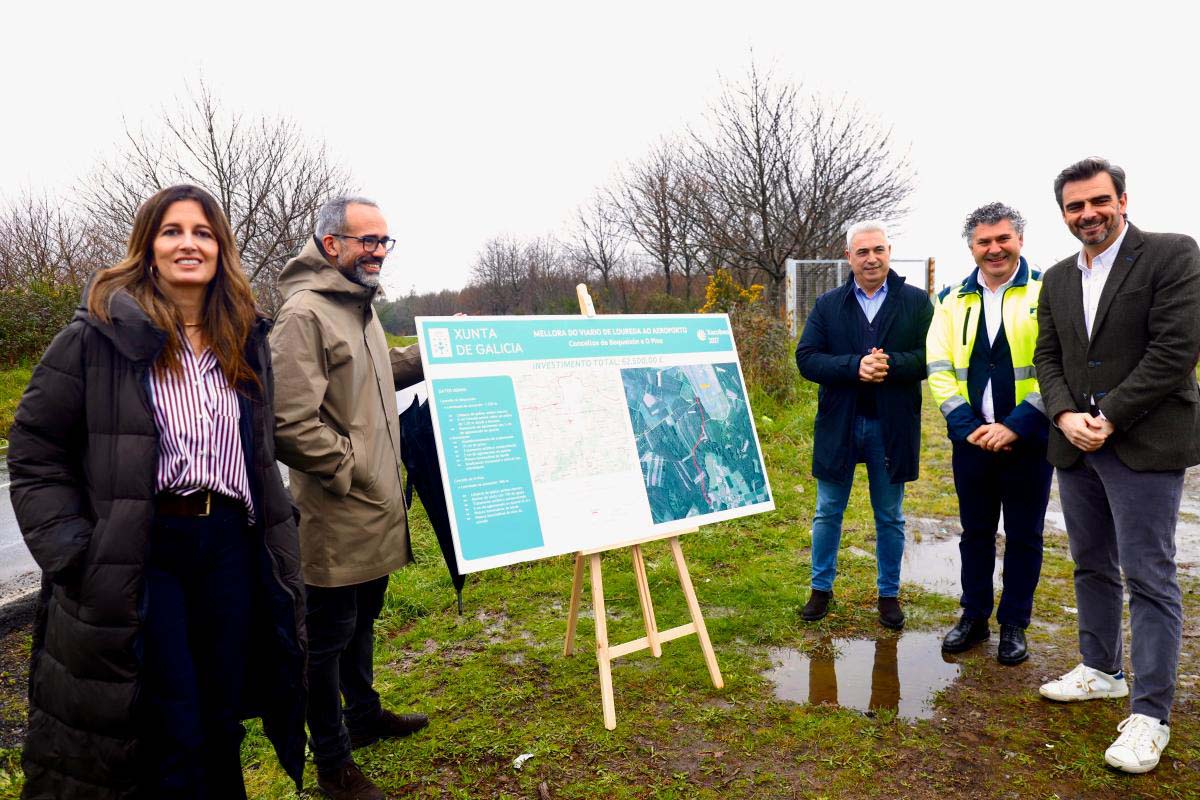 O conselleiro de Presidencia, Xustiza e Deportes, Diego Calvo, acompañado dos alcaldes de Boqueixón, Ovidio Rodeiro, e do Pino, Manuel Taboada; e pola directora xeral de Administración Local, Natalia Prieto, comprobaron esta mañá as melloras realizadas no viario que vai de Loureda (Boqueixón) ao aeroporto de Santiago de Compostela. Unhas obras de pavimentación e limpeza de cunetas que supuxeron un investimento de 62.500 euros, dos que o Goberno galego achegou preto de 44.000 euros a través da Orde de infraestruturas de uso público.