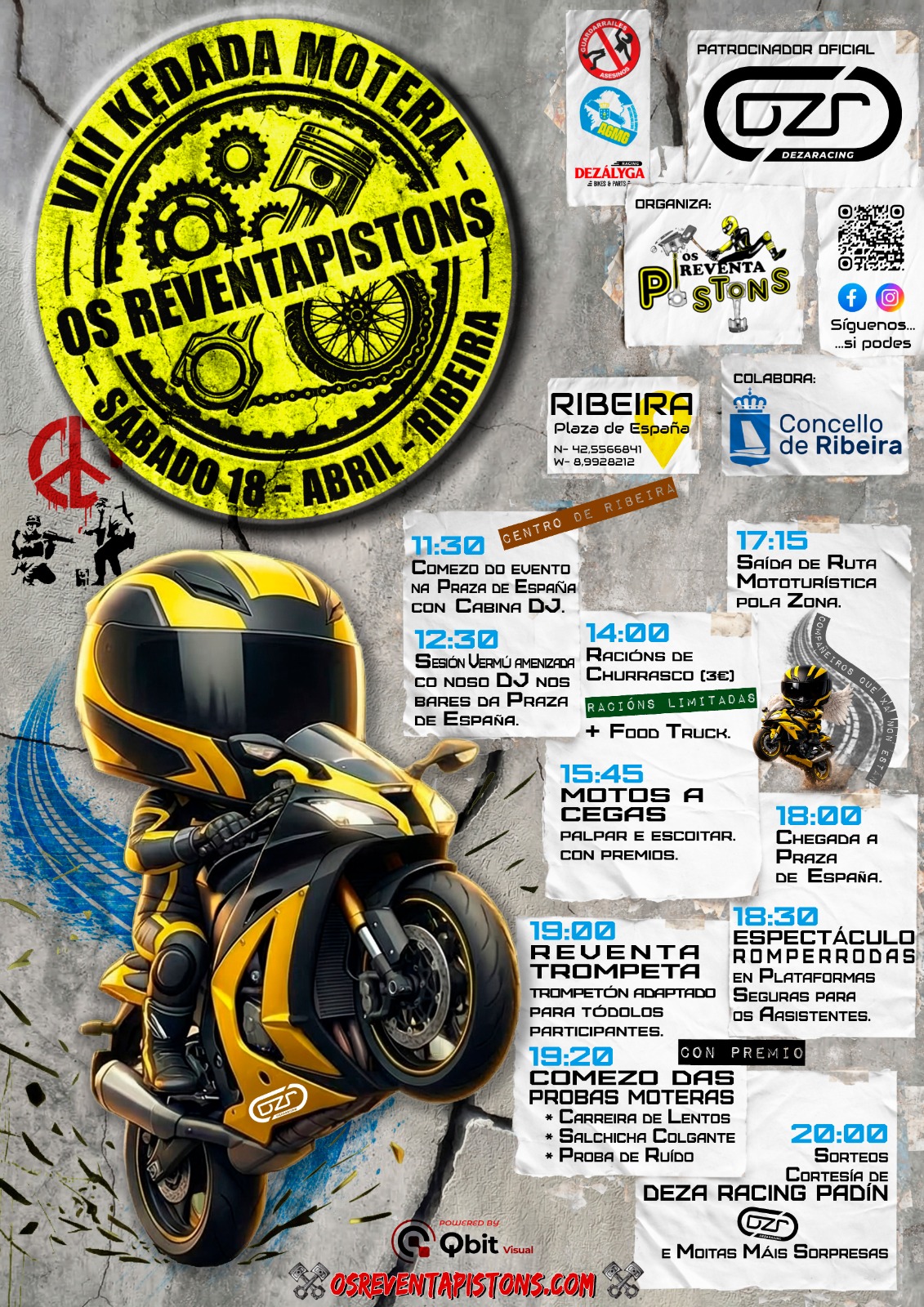 Os Reventapistóns celebrarán a súa oitava quedada no sábado, 18 de abril, coa praza de España de Ribeira como epicentro da actividade moteira que conta coa colaboración do Concello, servindo de antesala á concentración que terá lugar no mes de setembro.
