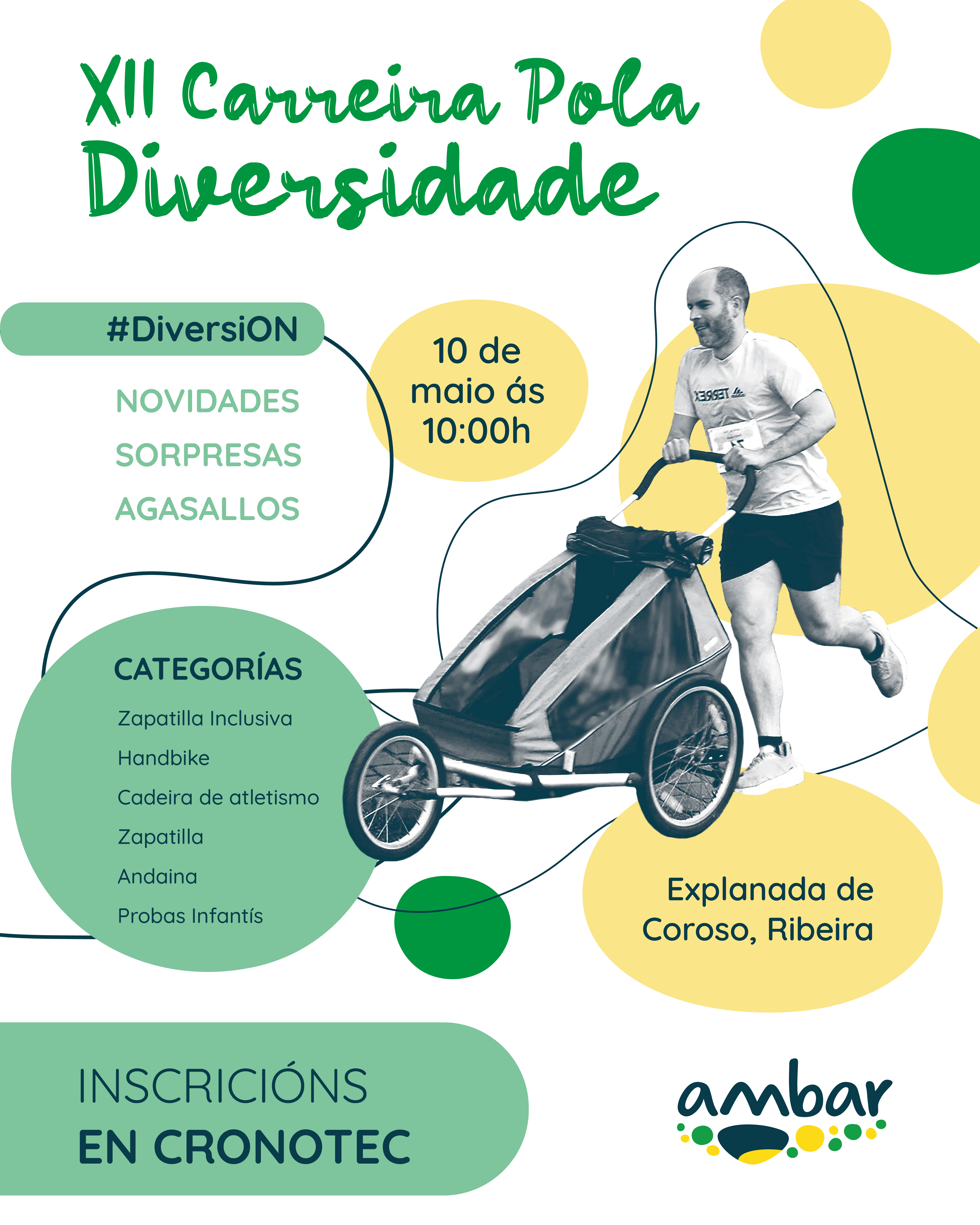 A Asociación Ambar das Persoas con Diversidade confirma oficialmente a celebración da duodécima edición da Carreira pola Diversidade, que terá lugar o domingo 10 de maio ás 10:00 h na Explanada de Coroso, en Ribeira. Tras o éxito de anos anteriores, a cita consolídase como un referente non só no eido deportivo, senón como un espazo de celebración e convivencia pola inclusión.