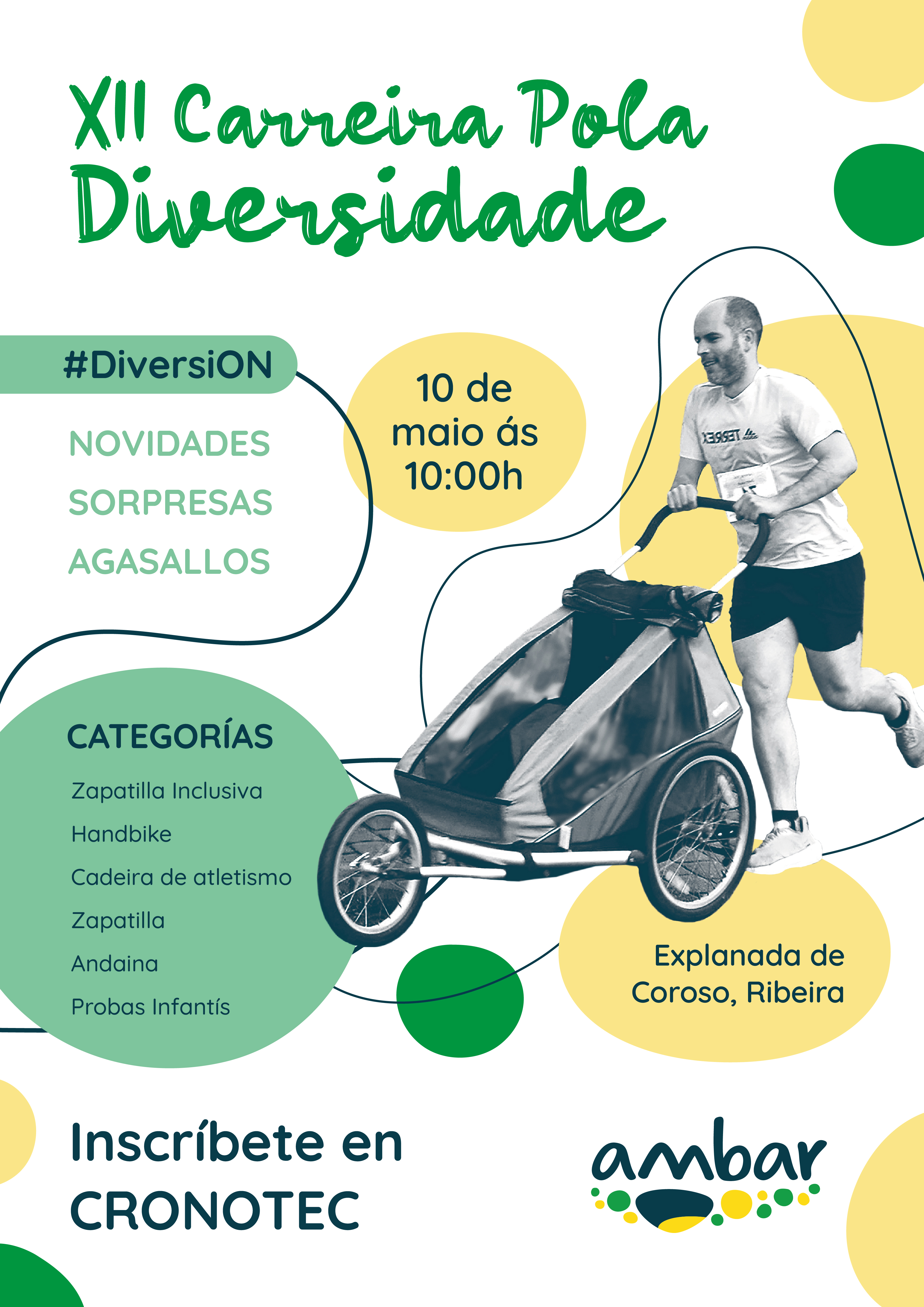 A Asociación Ambar das Persoas con Diversidade confirma oficialmente a celebración da XII Carreira pola Diversidade, que terá lugar o próximo domingo 10 de maio ás 10:00 h na Explanada de Coroso, en Ribeira. O evento consólidase como un referente de convivencia e inclusión, máis alá do estritamente deportivo.