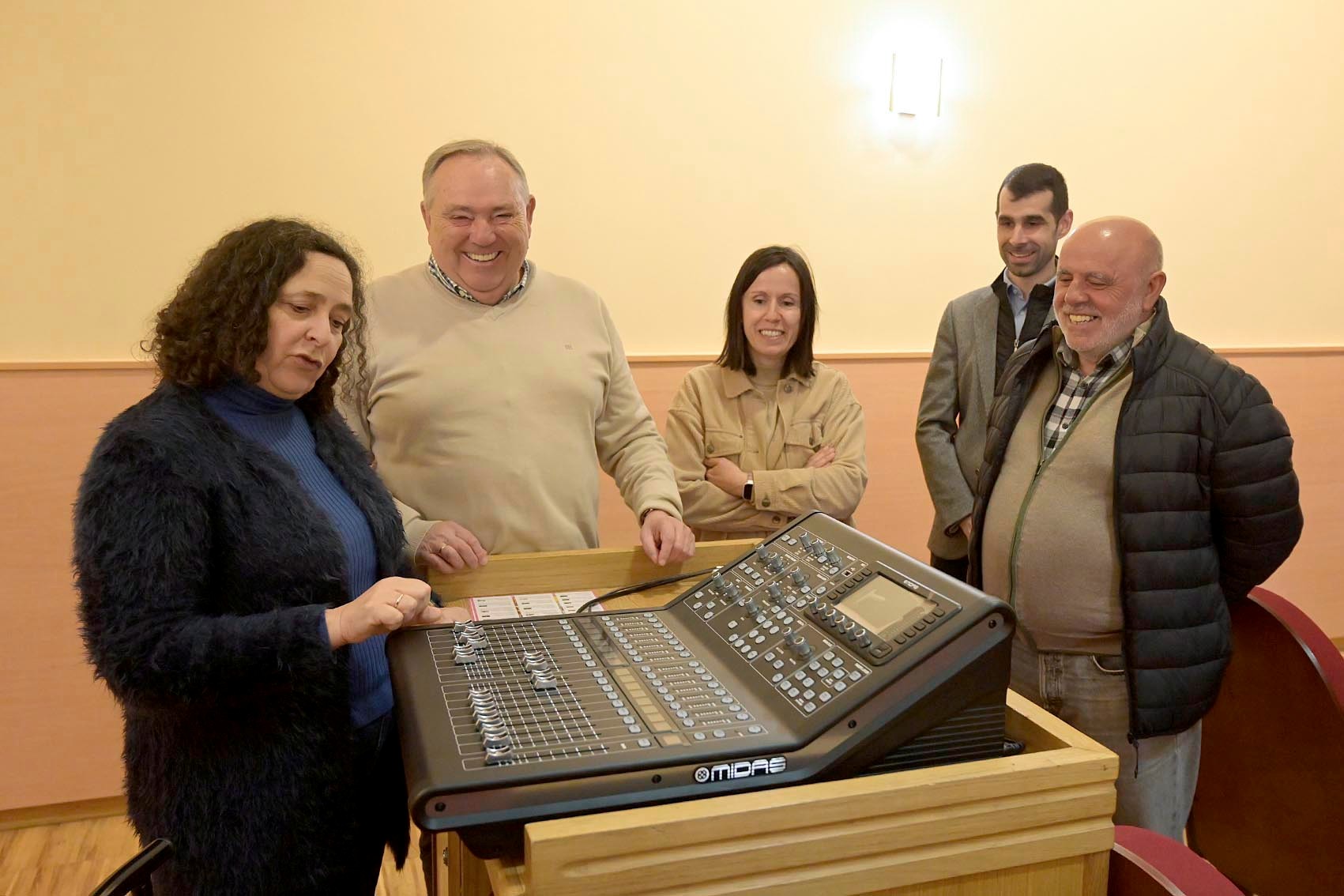 Entre as actuacións executadas destacan a renovación do espazo escénico mediante o pintado en cor negra dos paramentos, teitos, rieles e estrutura da pantalla con pintura acrílica satinada e lavable, o que contribúe a optimizar as condicións técnicas do escenario. Ademais, procedeuse á adquisición e instalación de novo equipamento de son e iluminación, incluíndo unha mesa de mesturas dixital, un caxetín dixital e tres focos de iluminación.