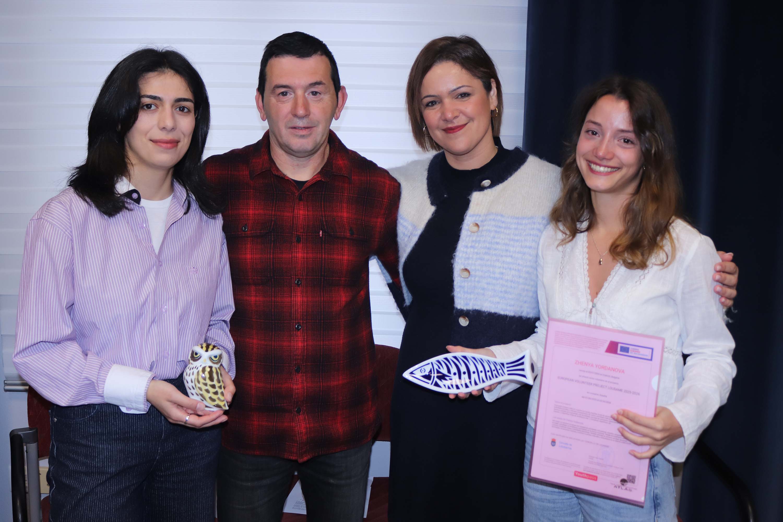 A concelleira de Cultura e Xuventude, Silvia Agrafojo, e o técnico municipal de Voluntariado, Xosé Manuel Outeiral, presidiron o acto de despedida das dúas voluntarias europeas, Ogsanna Yeritsyan (Armenia) e Zhenya Yordanova (Bulgaria), que participaron durante os últimos dez meses no programa de voluntariado europeo “European Solidarity Corps”. Un acto no que lles entregaron os certificados Youthpass (un instrumento de recoñecemento europeo que sirve para identificar e recoñecer os resultados da aprendizaxe adquiridos durante este tempo en Lousame) así como unhas figuriñas de Sargadelos: un moucho para Ogsanna, gran amante dos animais; e unha sardiña para Zhenya, quen descubriu este manxar xusto ao chegar a Lousame.