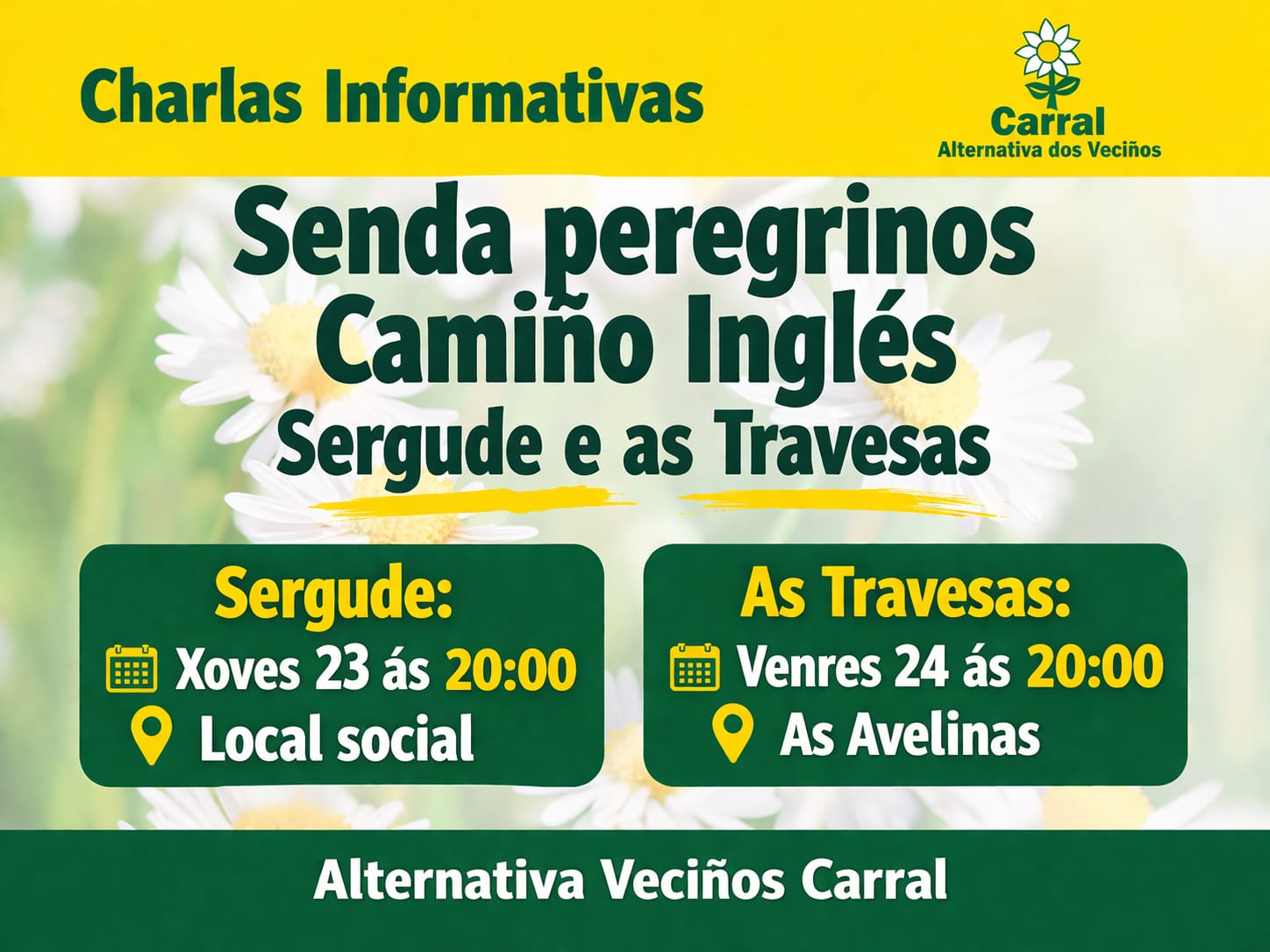 Alternativa realizará charlas informativas nas parroquias de Sergude e As Travesas afectadas polas novas sendas que a Xunta de Galicia está a crear no Camiño Ingles.