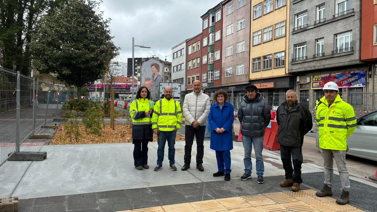 A alcaldesa visitou co concelleiro de Obras, Xesús Domínguez, a ampla intervención de Pontepedriña para mellorar a calidade do espazo público e preparar a cidade fronte ao cambio climático.