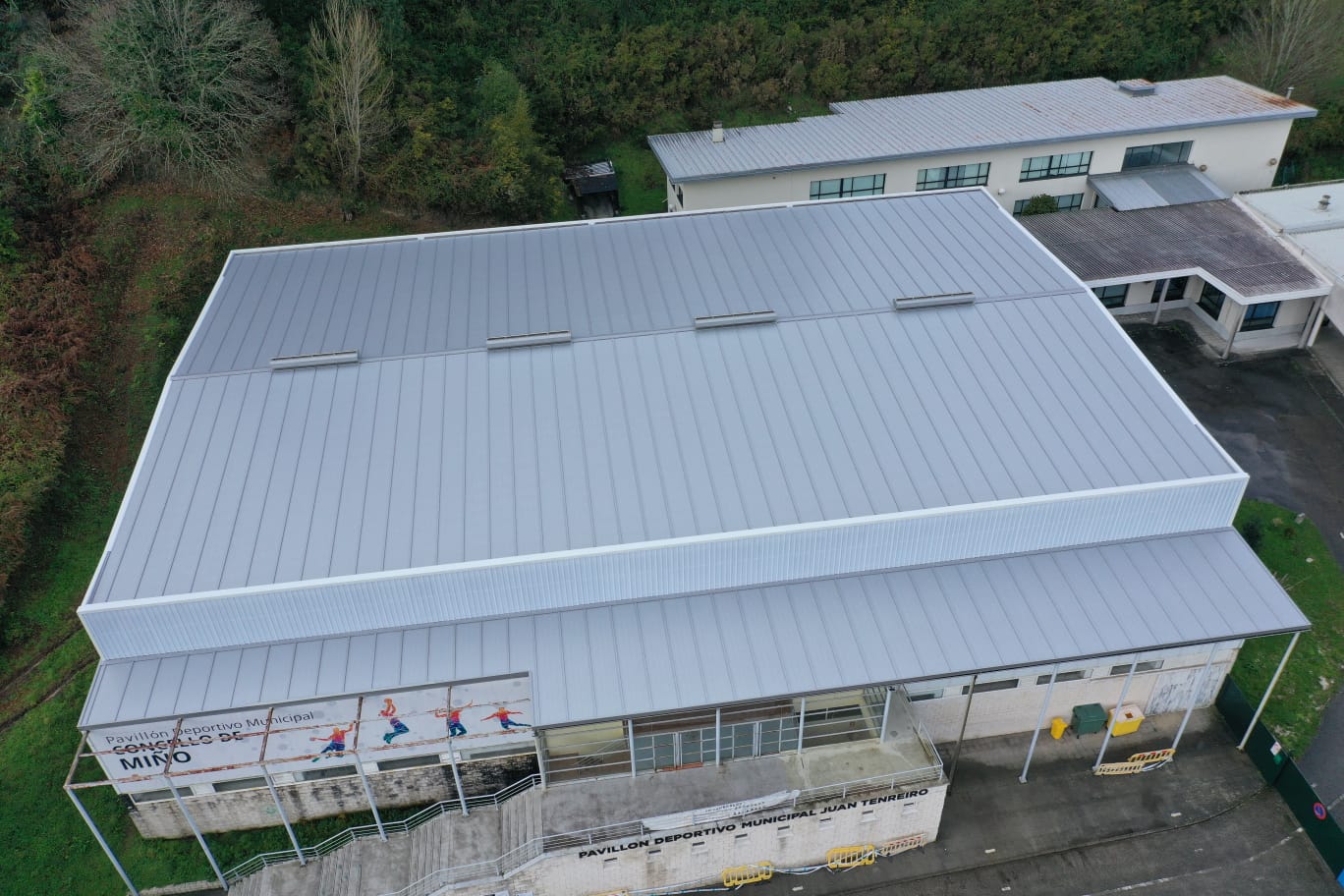 A nova cuberta incorpora unha maior inclinación, o que permite evitar a acumulación de auga, principal causa das filtracións. Ademais, elimináronse os canlóns interiores, que xeraban incidencias frecuentes, así como os montantes das pezas.