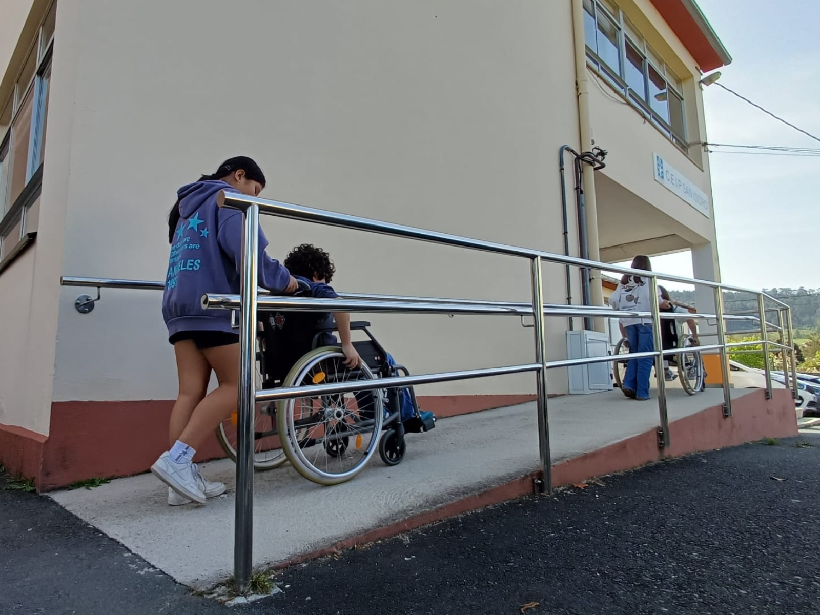 Ao longo da mañá realizaron unha auditoría de barreiras arquitectónicas do centro educativo (desnivel da rampla de entrada, ascensor, ancho das portas dos aseos e aulas…), percorreron parte das instalacións en cadeira de rodas e, posteriormente, cun anteface que lles cubría os ollos. Deste modo, puideron comprobar as dificultades que teñen que afrontar as persoas con problemas de mobilidade e de visión.